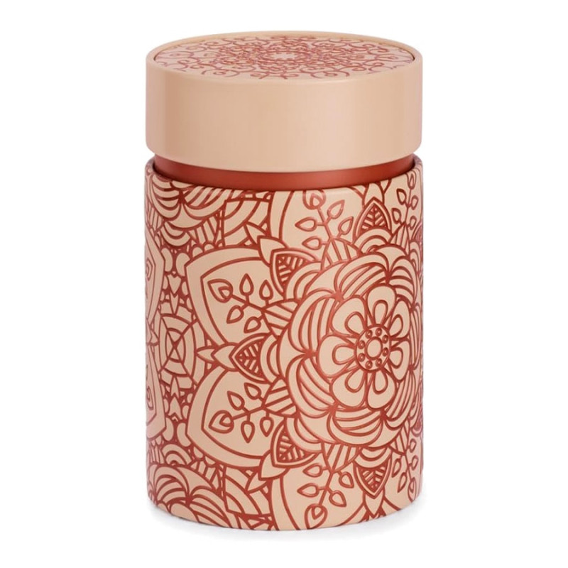 Cette boîte à thé Mandala a été pensée pour préserver l'intégrité de vos feuilles de thé. Son double couvercle assure une étanchéité parfaite, protégeant vos thés de l'humidité, de la lumière et des odeurs extérieures. Le fer blanc laqué avec protection alimentaire garantit une conservation saine et durable, respectant la pureté des arômes.