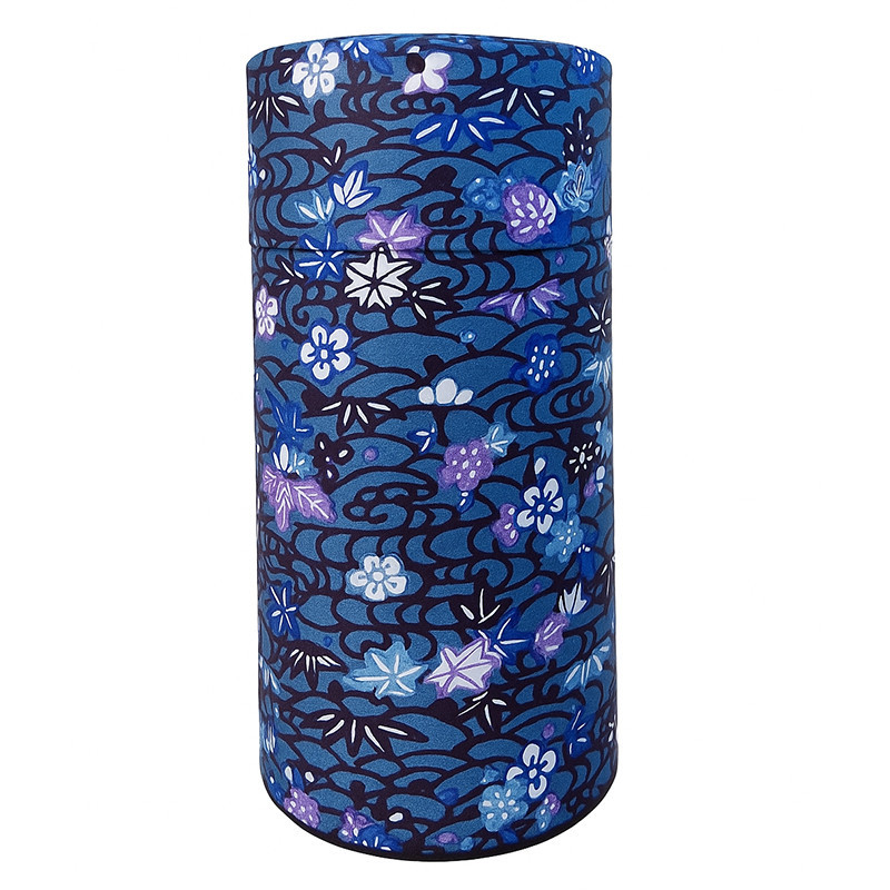 Discover the perfect harmony between Japanese tradition and contemporary refinement with this 200g Washi tea tin. Its handcrafted washi paper covering evokes a flowery aquatic landscape, where blue waves mingle with purple, white, and indigo flowers.