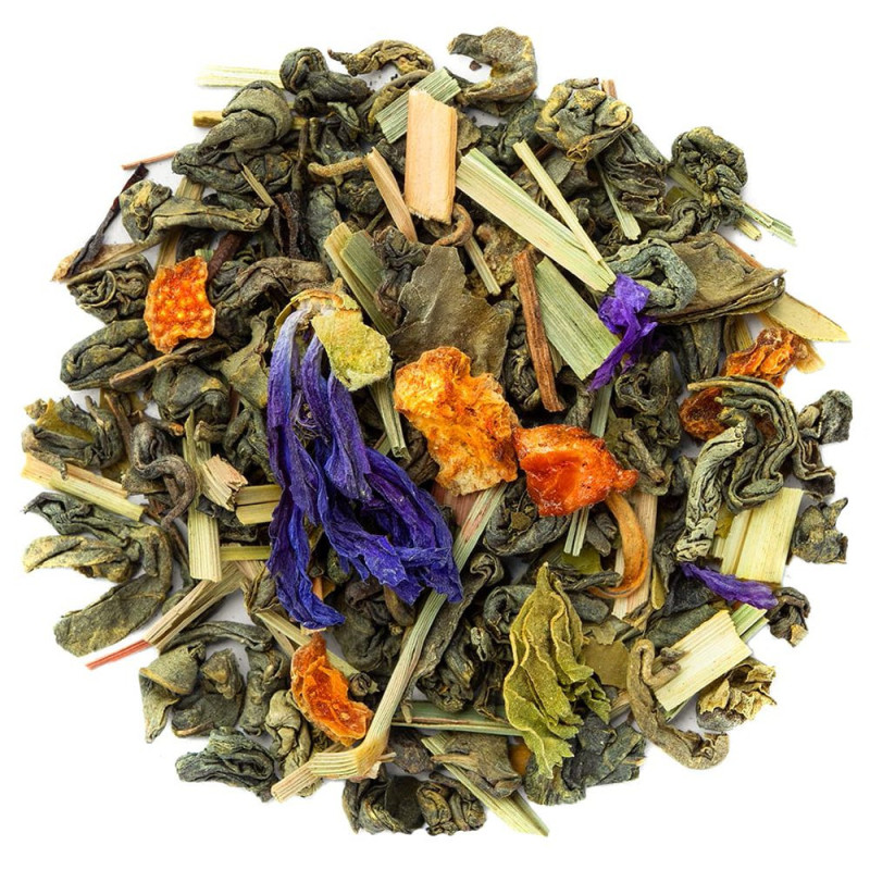 Una composizione energica! Il nostro tè verde bio energizzante è costituito da una base di quattro tè: il tè verde Gunpowder, il tè matcha, il tè bianco Mao Feng e il tè nero Pi Lo Chun Longkou. Ha un gusto di limone e albicocca e contiene ingredienti rari e ricercati come il matcha, il mate, il guaranà o ancora la spirulina. Il tè verde energizzante saprà rafforzarvi a tutti i livelli, è ricco di antiossidanti, migliora la vostra vitalità e stimola il vostro sistema digestivo. È il tè verde ideale per potenziare le vostre performance.