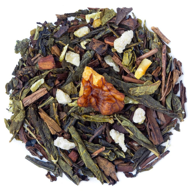 Scoprite il nostro tè verde noci tostate, una creazione unica per gli amanti del tè. Il tè verde Sencha e l'Houjicha formano la base di questa infusione, offrendo note di tè verde fresche e dolci, con un leggero tocco di tostatura, il gusto sottile del tè Sencha si sposa perfettamente con la ricchezza dell'Houjicha, gli aromi speziati della cannella e dello zenzero aggiungono un tocco piccante alla tazza. Le note di nocciola e di noce tostata aggiungono un sapore unico, per finire la noce di cocco e la vaniglia aggiungono dolcezza ad ogni sorso. Con il suo gusto complesso, questa bevanda calda è perfetta per rilassarsi in qualsiasi momento della giornata