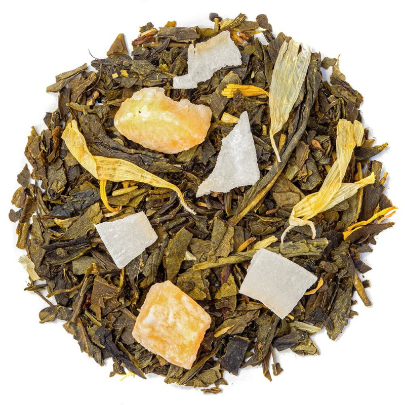 Cercate un tè verde fresco ed esotico per evadere per il tempo di una tazza? Il nostro Tè verde Piña Colada ha il sapore perfetto per trasportarvi su una spiaggia di sabbia fine, sotto le palme da cocco. Il gusto fresco e fruttato dell'ananas si sposa perfettamente con la dolcezza della noce di cocco, mentre il tè verde apporta una sottile amarezza che delizierà le vostre papille gustative. Da gustare caldo o freddo secondo le vostre preferenze.