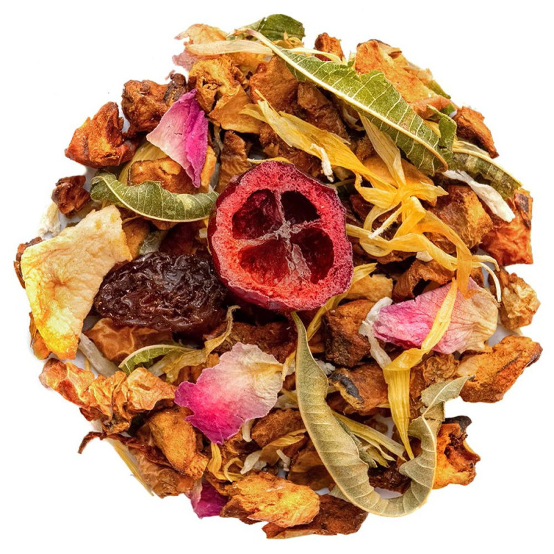 Scoprite il gusto unico dell'infuso cranberry limone, elaborato a base di foglie di verbena e mirtillo rosso. Queste bacche rosse sono anche conosciute con il nome di cranberry o mirtillo rosso. Associato alle note dolci dell'uva, del cocco o ancora della mela, questa tisana vi promette un'esperienza gustativa delle più golose. Le scorze di limone apportano una nota acidula all'insieme. I petali di fiori di calendula e di rose vengono a sublimare il tutto, per il più grande piacere delle vostre papille gustative.
