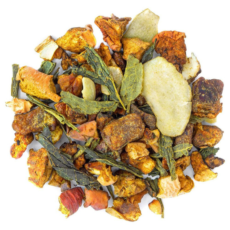 Veri pezzi di frutta secca, piante intere e tè di origine accuratamente selezionati.