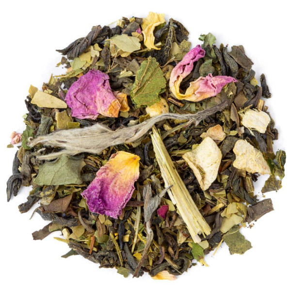 De oolong is een effectieve afslankthee, het bevat een krachtige vetverbrander. Groene theeën helpen ook om af te vallen. De drainage wordt verzorgd door de paardenbloem, de rooibos en de groene maté, ze beperken de vochtretentie. De brandnetel staat bekend als een fantastische plant om af te vallen. Het rozenblaadjes en de witte thee hebben een detox-effect. De tulsi en braambladen controleren de bloedsuikerspiegel en helpen het cholesterol te verlagen.