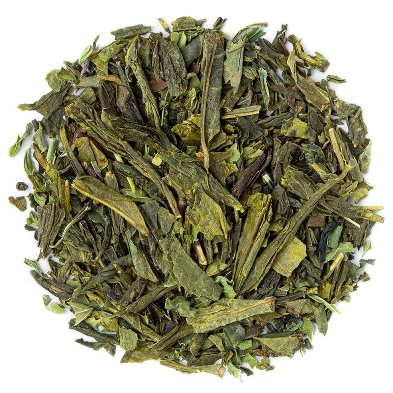 In deze infusie met gouden kleur vinden we Chinese Sencha groene thee en gedroogde groene muntblaadjes. Deze kwaliteitsingrediënten zijn afkomstig van de biologische landbouw. De Chinese Sencha is het resultaat van een unieke bereiding die het onderscheidt van andere groene theeën. De oxidatie van de thee wordt gestopt door stoom, vervolgens worden de blaadjes gedroogd en gerold. De smaak van Sencha is zacht, met een fruitige toets. De muntblaadjes brengen een delicate frisheid aan deze infusie. In tegenstelling tot pepermunt is groene munt zacht en heeft het geen overweldigende smaak.