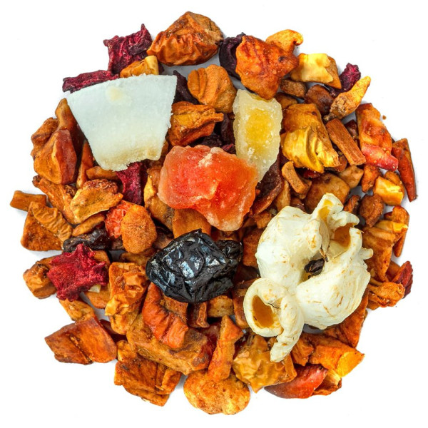 Elk ingrediënt van deze lekkere kruidenthee is zorgvuldig geselecteerd, met respect voor tradities en de natuur. De gedroogde vruchten behouden al hun natuurlijke smaken, terwijl de kaneel die gekruide warmte brengt die de beste infusies kenmerkt.