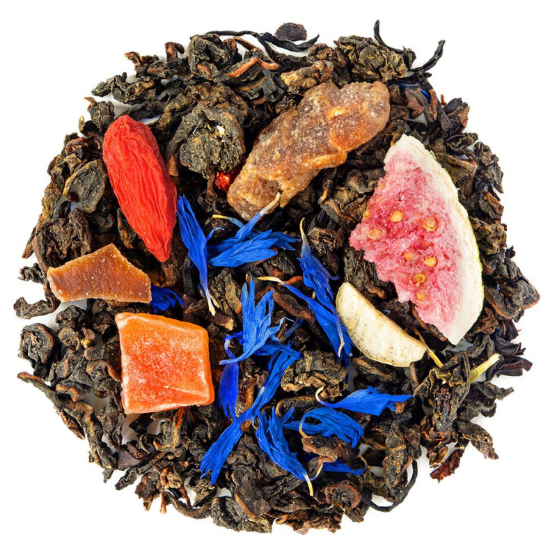 Ontdek onze Montagne du Tibet thee met granaatappel-perziksmaak, een unieke en exotische melange bestaande uit een Oolong theebasis. We hebben papaja, gojibessen, perzik, vijg, en korenbloemen en goudsbloemen toegevoegd om een evenwichtige en rustgevende mix te creëren voor geest en lichaam. De Montagne du Tibet Oolong thee is ideaal voor degenen die willen ontspannen en nieuwe energie opdoen. De Oolong die in onze samenstelling wordt gebruikt, wordt geteeld in de bergen van Fujian in China. Hij staat bekend om zijn zachte en complexe smaak, evenals om zijn gezondheidsvoordelen.