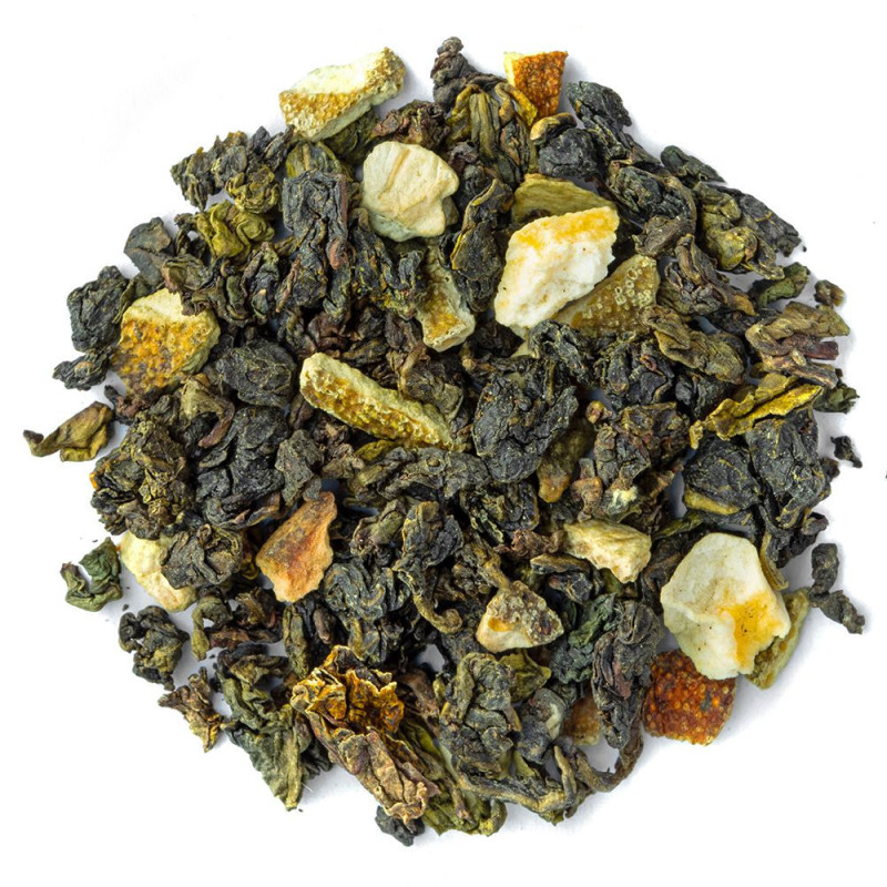 Onze semi-gefermenteerde Oolong thee komt uit China, de bladeren worden geteeld in het hart van de natuur, in Fujian. De zachte infusies geven weinig theïne af, in tegenstelling tot een andere thee of een koffie. Deze biologische thee wordt geparfumeerd met sinaasappelschillen en gedroogde mango. De infusie kenmerkt zich door een zurige noot en een exotische smaak.