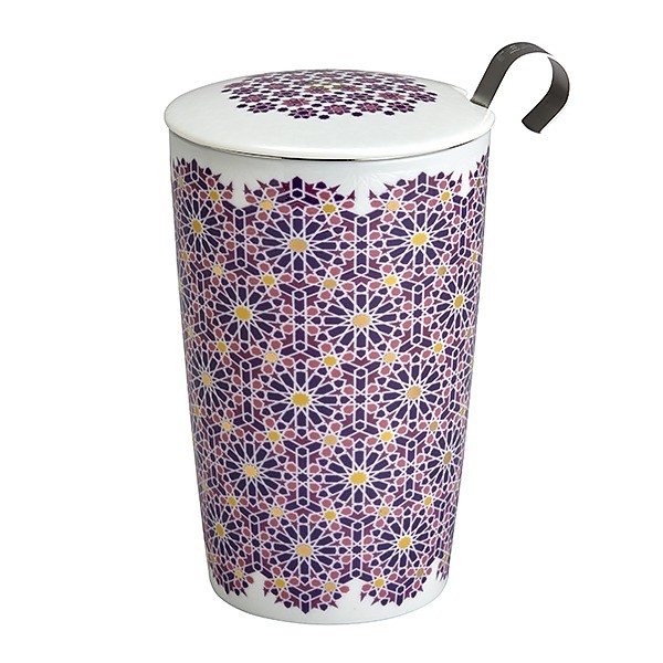 De theepot Andalusia Berry wordt geleverd met een verwijderbaar roestvrijstalen filter en een deksel. Deze porseleinen beker met dubbele wand houdt uw infusies warm, het kan ongeveer 35cl bevatten.