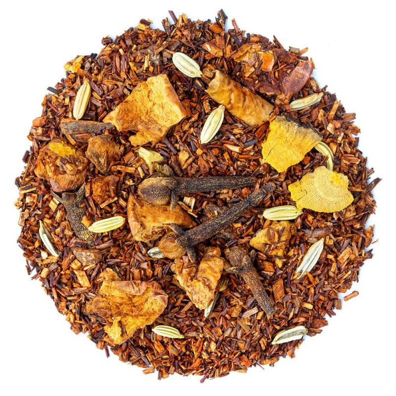 Nous avons composé ce rooibos pomme cannelle autour du rooibos sud-africain, cette plante naturellement douce et sans théine. Pour lui donner du caractère, nous y avons ajouté des morceaux de pommes qui apportent une touche fruitée et sucrée, de la cannelle pour la chaleur épicée, du fenouil pour ses notes délicatement anisées, et quelques clous de girofle. Une légère touche de réglisse vient sublimer l'ensemble et créer une infusion gourmande aux multiples facettes.