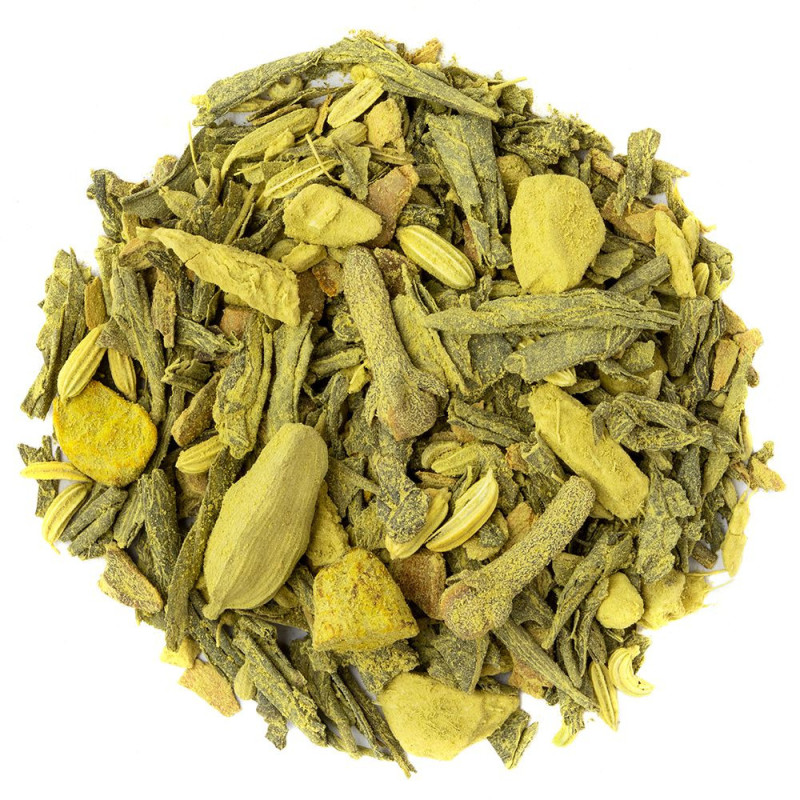 Ce mélange unique marie le thé vert Sencha et le Matcha en poudre, connu pour ses propriétés stimulantes, avec un mélange d'épices indiennes comme le gingembre, la cannelle, la cardamome et le clou de girofle. Imaginez la richesse d’une infusion bio qui évoque les senteurs d’un marché aux épices indien, tout en offrant la douceur et la fraîcheur du matcha japonais. Découvrez notre Matcha Chai stimulant, réconfortant et surprenant !