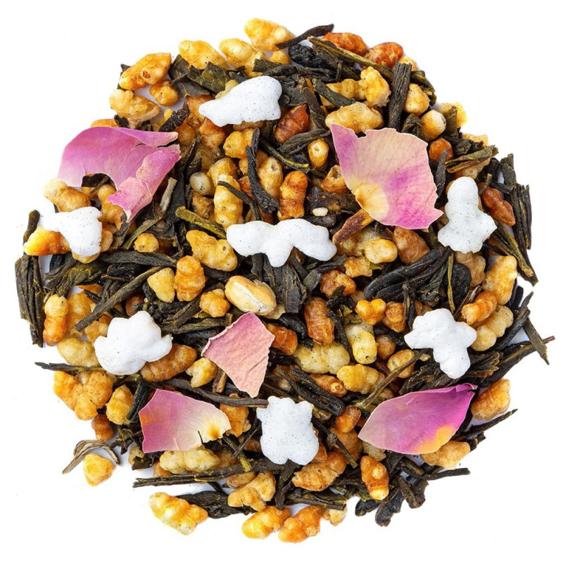 Le thé vert fleurs du Japon est vraiment très original, il conviendra parfaitement pour les amateurs de nouvelles saveurs. En bouche, l'arôme légèrement torréfié du thé japonais Genmaicha Miyazaki se mélange avec le tendre parfum des légendaires fleurs de cerisier et la force de la spiruline. Ce thé japonais viendra ravir vos papilles et éveiller tous vos sens. Très faible en théine, vous pourrez l'apprécier à tout moment de la journée.