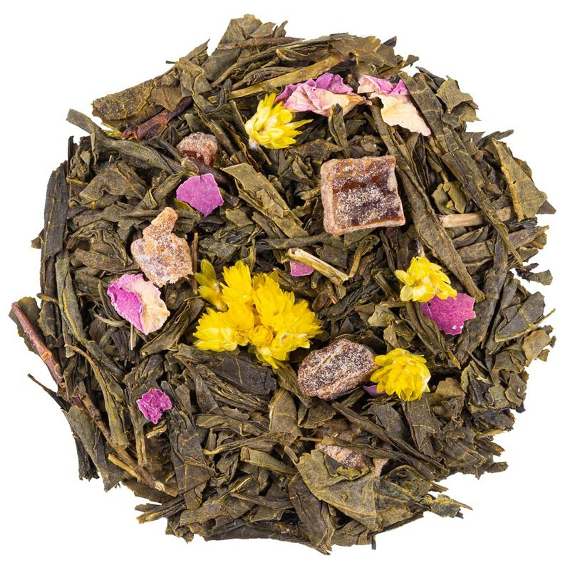 Le thé vert Yankou BIO est vivement conseillé pour tous les amoureux de notes florales et d'exotisme ! Sur une base de thé vert Sencha, ce thé gourmand à la saveur de rose fruitée est accompagné de morceaux de dattes, de pétales de rose et de fleurs d'immortelle.