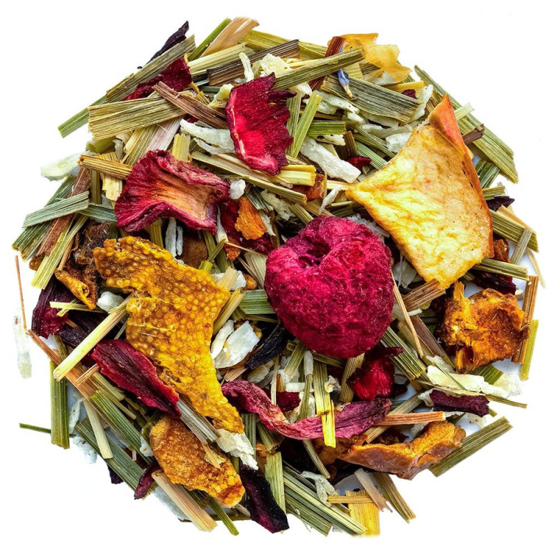 L'infusion bio framboise citron est royalement délicieuse, elle dispose d'un goût de framboise et de citron vert. Ce mélange aux notes de printemps est également composé de pomme, de coing, de coco, de baies de goji et de fleurs. Le coing présent dans cette délicieuse composition apporte une quantité de fibres importantes, ce qui favorise la digestion et contribue à lutter contre les maladies cardiovasculaires et le diabète. Cette infusion ravira petits et grands. À savourer toute l'année à tout moment de la journée.