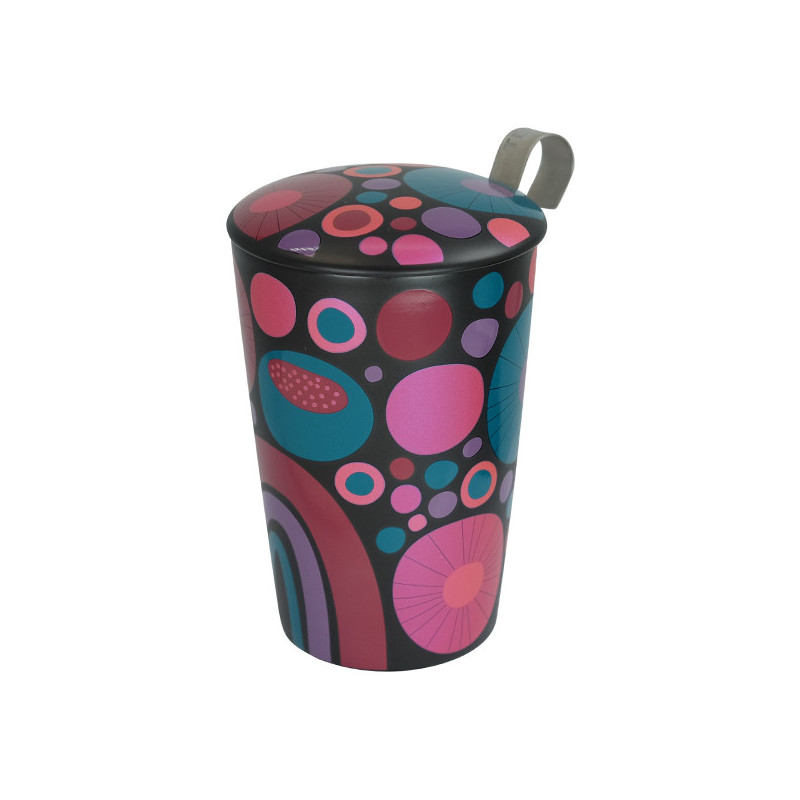 Savourez vos thés et tisanes avec style dans cette tisanière Teave Cheerful au design rétro pétillant. Ses rondeurs colorées et son motif joyeux de cercles multicolores sur fond noir apportent une touche de gaieté à vos moments d'infusion. Fabriquée en porcelaine de qualité, cette tisanière de 35 cl réunit tous les atouts pour accompagner vos pauses thé au quotidien. La porcelaine offre une résistance supérieure aux chocs, une surface lisse et non poreuse qui facilite l'entretien, et une excellente isolation thermique qui maintient votre infusion bien chaude plus longtemps.